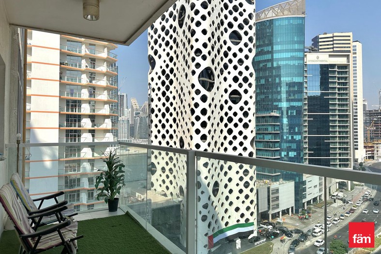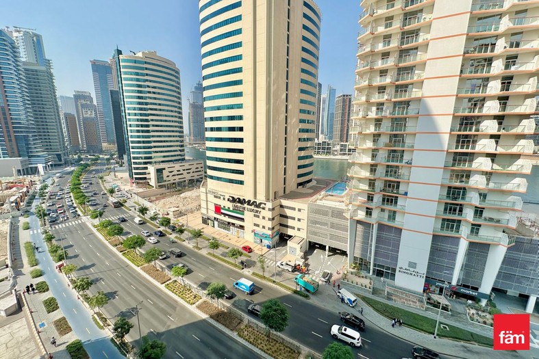 - Large living room with balcony overlooking Business Bay Canal