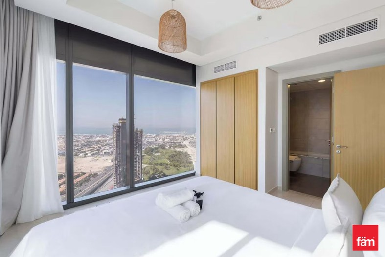 This high-floor corner unit offers stunning open views of the sea and Burj Al Arab, with abundant natural light and a premium layout designed for comfortable living.