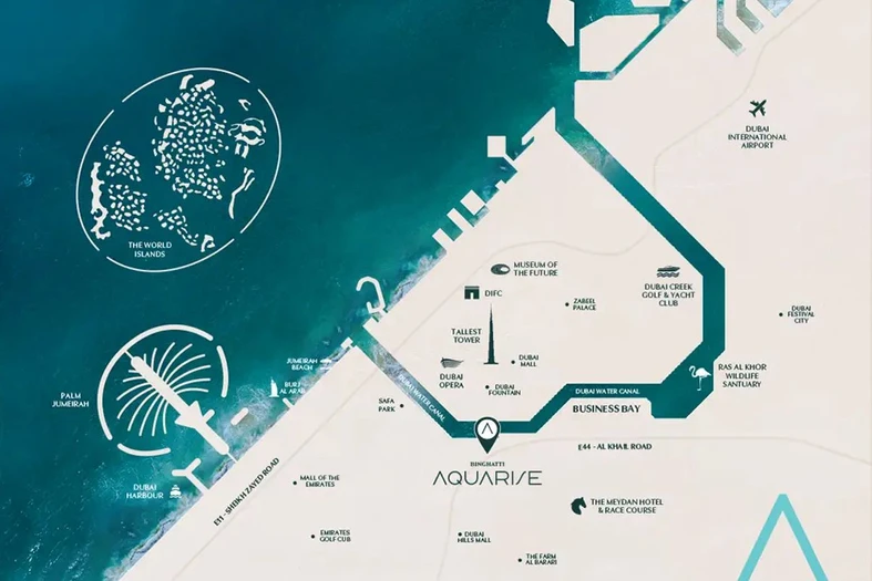 Binghatti Aquarise at Business Bay unveils the new modern waterfront splendour wave of architecture finesse by the leading Binghatti Developers lined with studios to 4-bedroom apartments and suites with pool. Where crystal shores remind of the elegance of the azure coast, an awe-inspiring new architectural masterpiece comes to life. This isn't merely a high-rise 25-storey tower; it’s an experience of total immersion, that rolls as salubriously as a symphony with three basements, ground, mezzanine along with rooftop luxury and leisure. The façade emerges glistening from the lively breath of Business Bay, matching the poetic aesthetics that represents the trademark of Binghatti’s heritage. The high-rise tower presents itself as a work of art through its architectural wizardry which unifies the heartbeat of the city with waterfront peace of living for holistic experience.