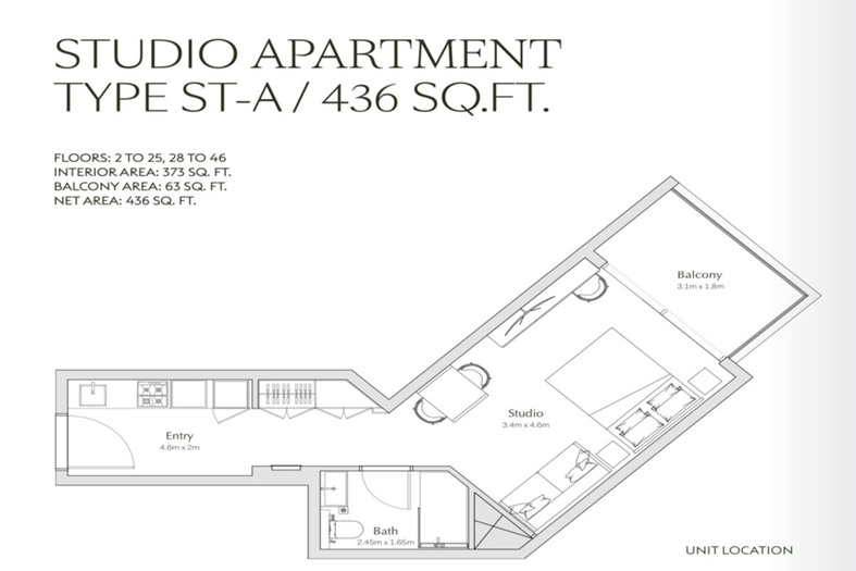 • Studio apartment | ~438 sq.ft.