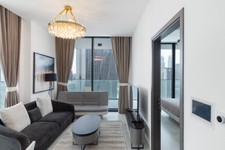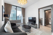 fäm Properties proudly presents this high-floor 1-bedroom apartment facing Burj Khalifa views, located in Paragon by IGO, Business Bay.