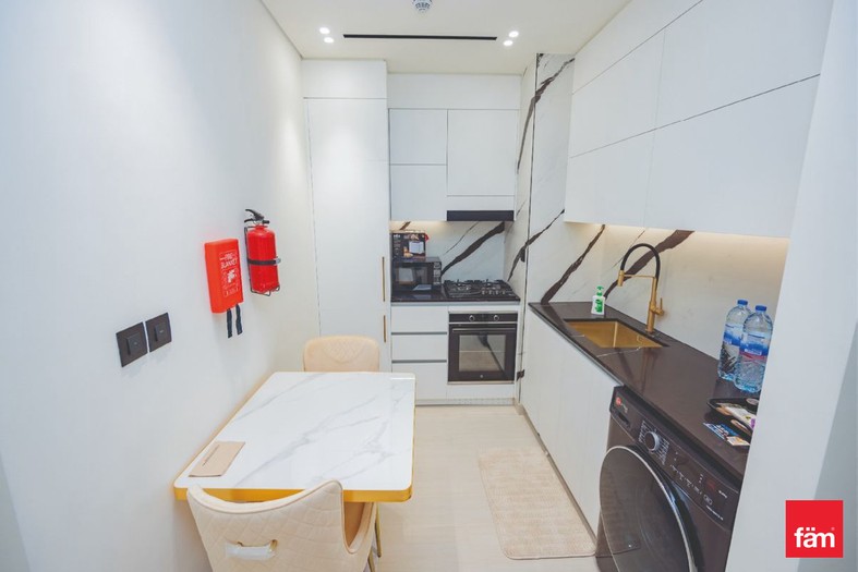A sleek, brand-new studio in the heart of Business Bay. This minimalist space offers built-in wardrobes, kitchen appliances, and a private balcony overlooking the community.