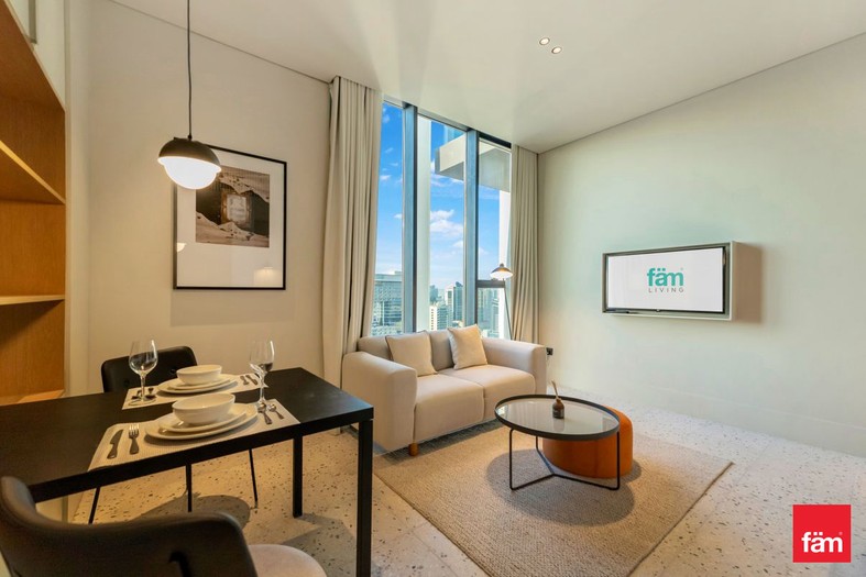 The apartment features an open-plan living and sleeping area, a fully equipped kitchenette, and floor-to-ceiling windows that fill the space with natural light. With all bills included, residents can enjoy a hassle-free lifestyle in one of Dubai’s most dynamic districts.